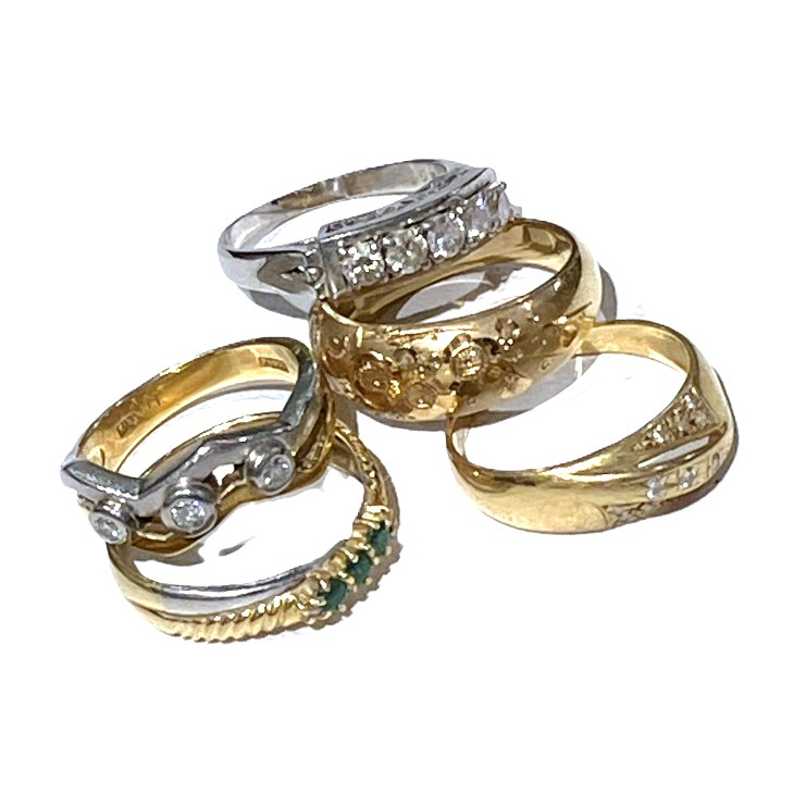 18金指輪2本、プラチナ900指輪、コンビ指輪2本、